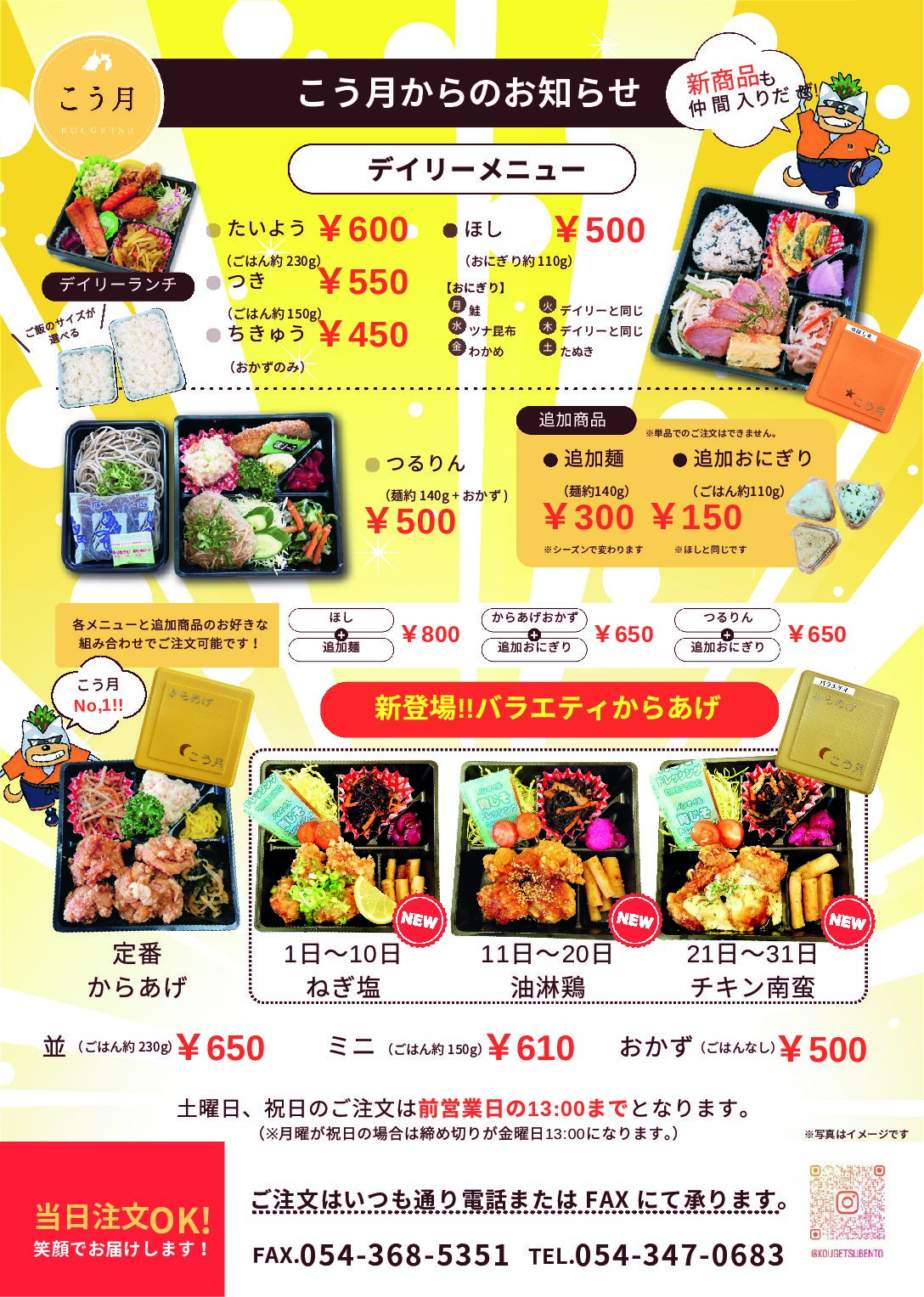 特製からあげが4個入り、毎日変わる副菜も楽しめます!