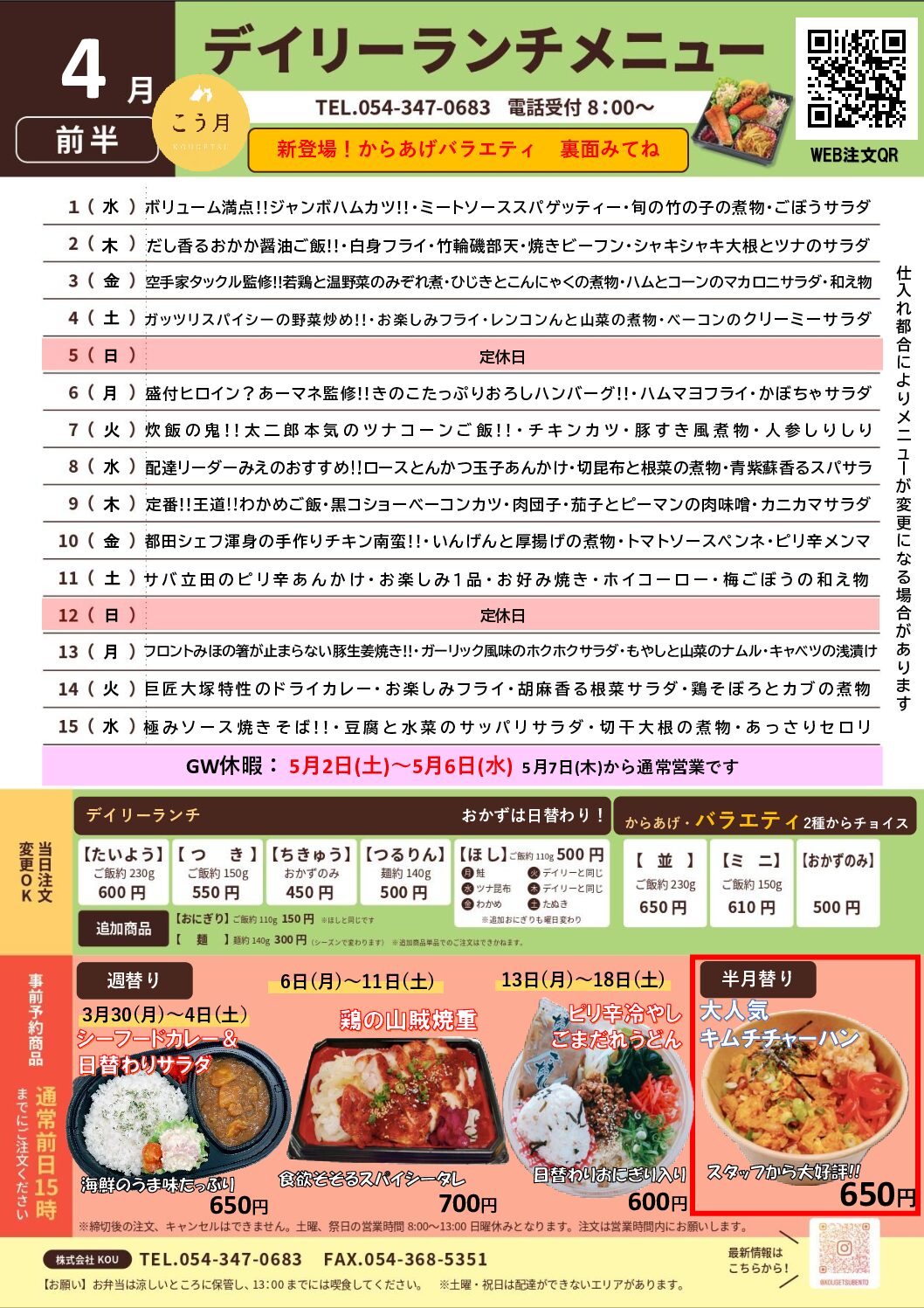 【 期間 】【半月替り】4月前半 1日~15日