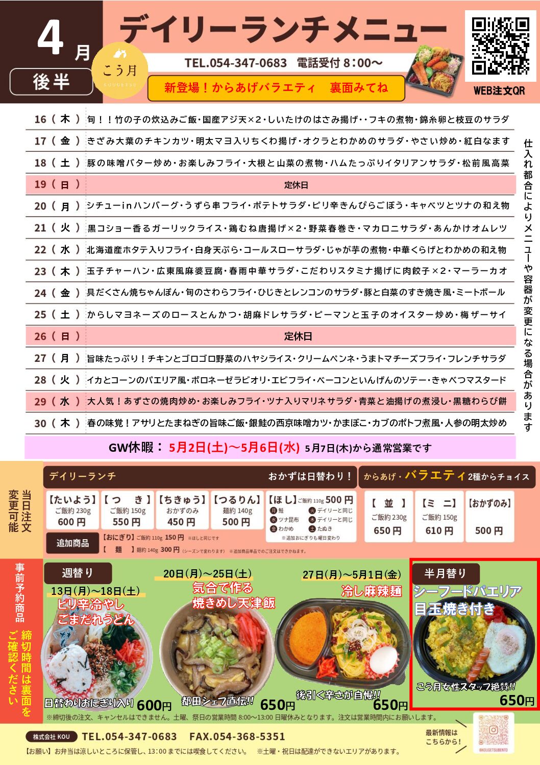 【 期間 】【半月替り】4月後半 16日~30日